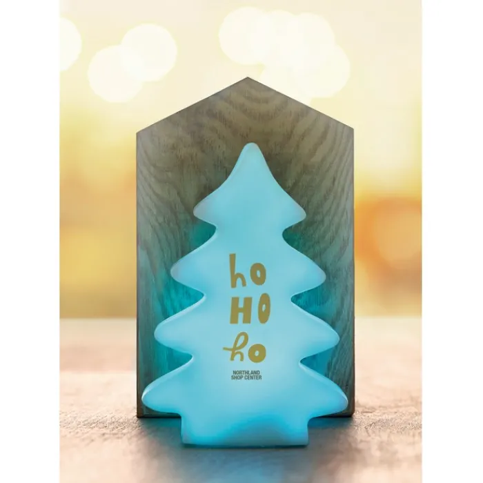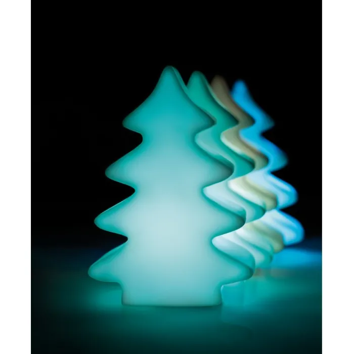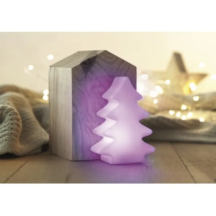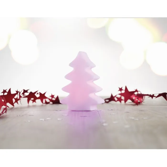 Abete luminoso in pvc. Cambia colore ad intermittenza: bianco, blu, viola, rosso, giallo e verde. 3 batterie LR44 incluse.