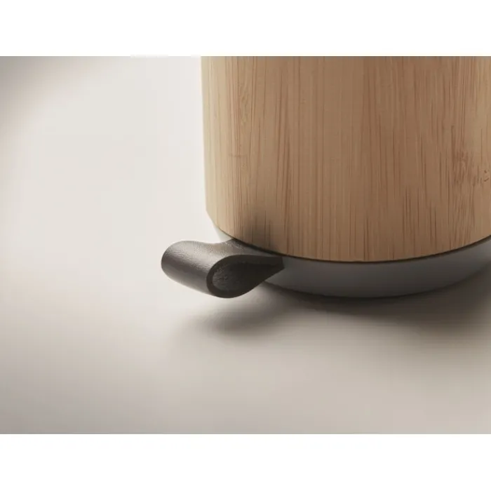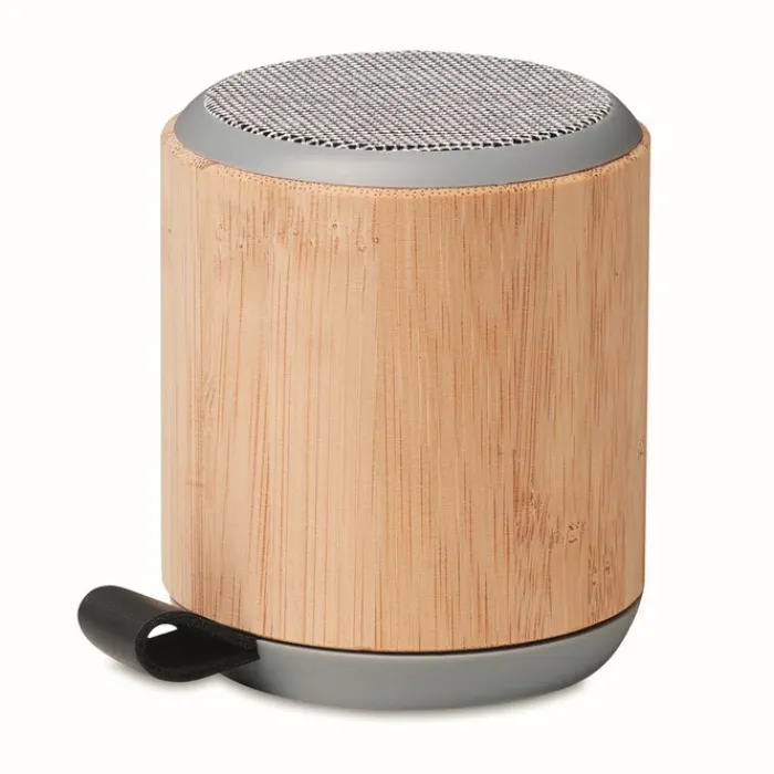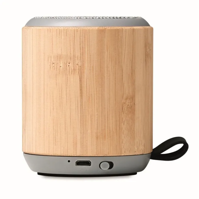 Altoparlante wireless 5.0 con copertura in bambù, parte superiore in ABS e cinturino in PU. Collega il tuo smartphone e ascolta la tua musica preferita ovunque tu sia. L’altoparlante ha una batteria ricaricabile agli ioni di litio da 300 mAh che ha un tempo di riproduzione approssimativo di 2 ore quando è completamente carica. Uscita: 3W, 4 Ohm. Il bambù è un prodotto naturale, per cui possono esserci leggere variazioni di colore tra uno speaker e l’altro.