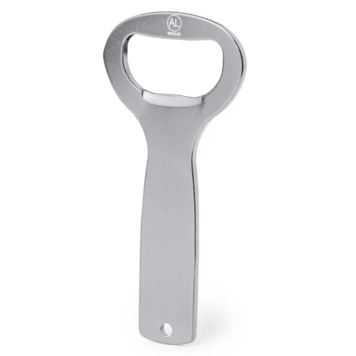 Apribottiglie in alluminio ricicialto certificato disponibile in una varia gamma di colori vivaci. Con manico fustellato per poter essere appeso. Appositamente progettato per la stampa laser. Presenta sulla testa il logo dell’alluminio riciclato. Presentato in un sacchetto di carta riciclata. L’alluminio riciclato è un materiale con possibilità di riciclaggio quasi infinite, senza che le sue proprietà originali vadano perdute e consumando meno energia nel processo. Certificazione GRS (Global Recycled Standard), che garantisce l’origine riciclata del materiale utilizzato per la fabbricazione del prodotto