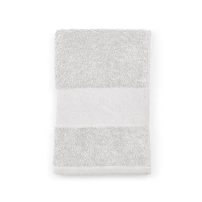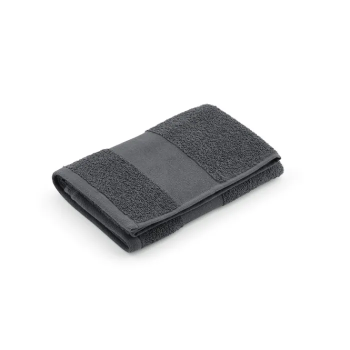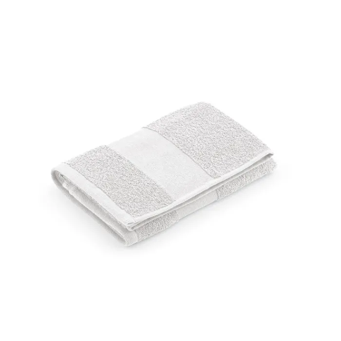 Asciugamano da bagno in spugna di cotone riciclato da 370 g/m² (60% cotone riciclato e 40% cotone). Misura 90 x 150 cm. Confezionato in un sacchetto biodegradabile. Prodotto in Portogallo.