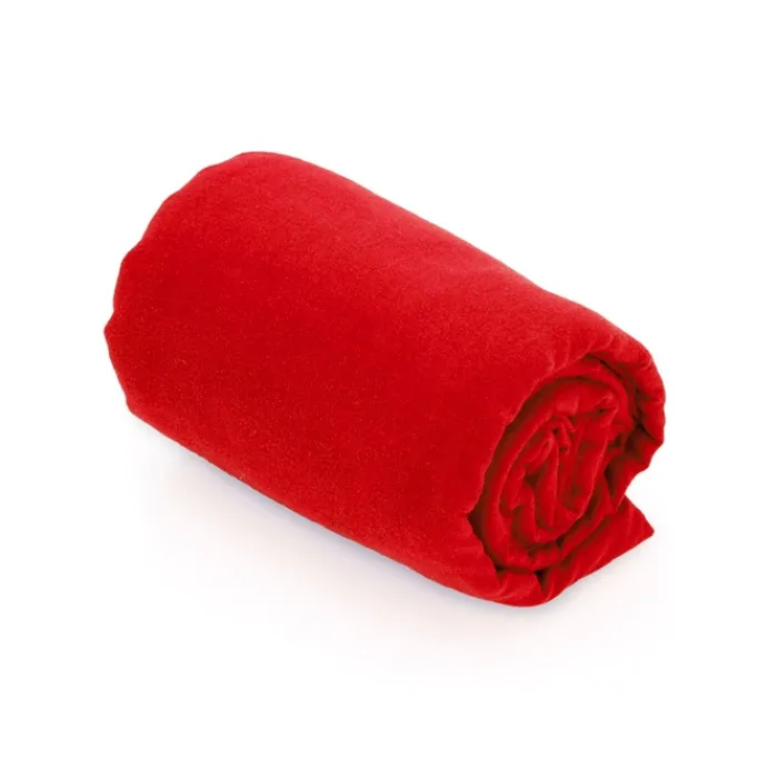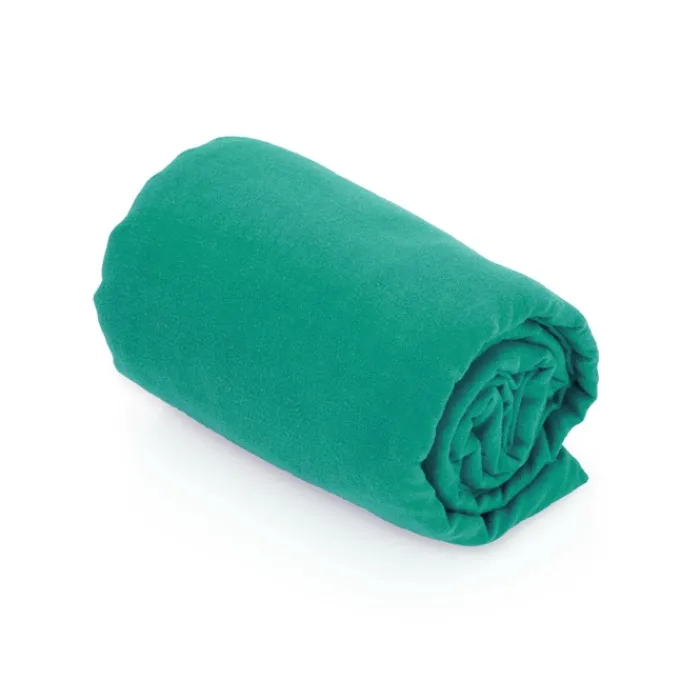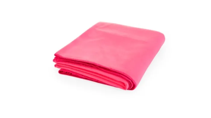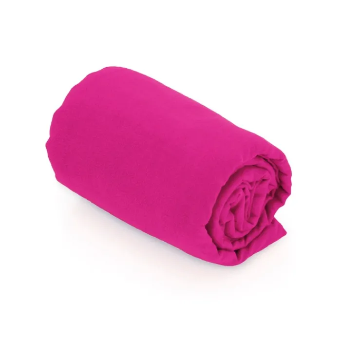 Asciugamano 138x72cm in microfibra assorbente e morbida da 200g/m2 in colori assortiti. Presentato in una pratica borsa in rete con chiusura a coulisse.