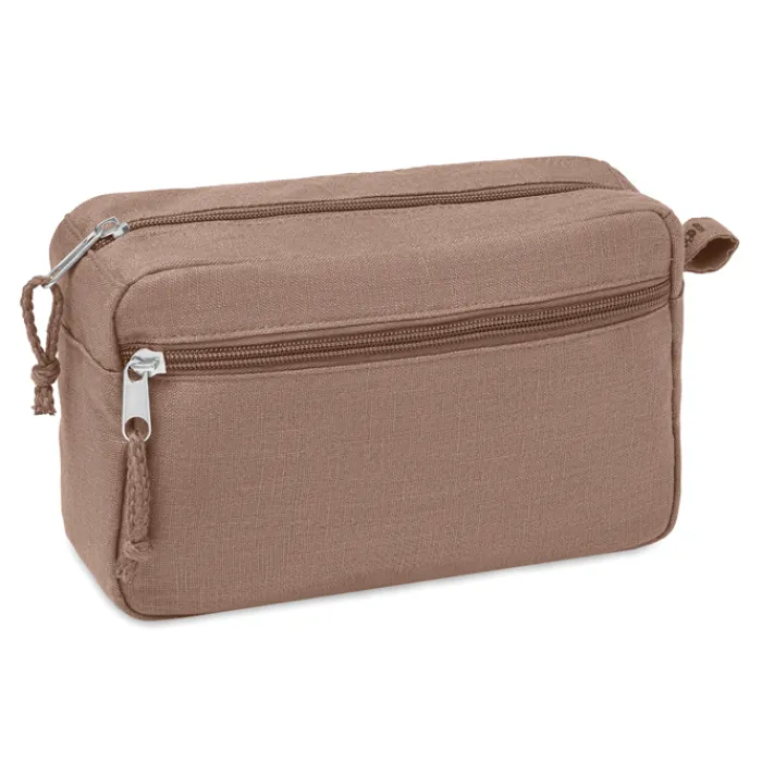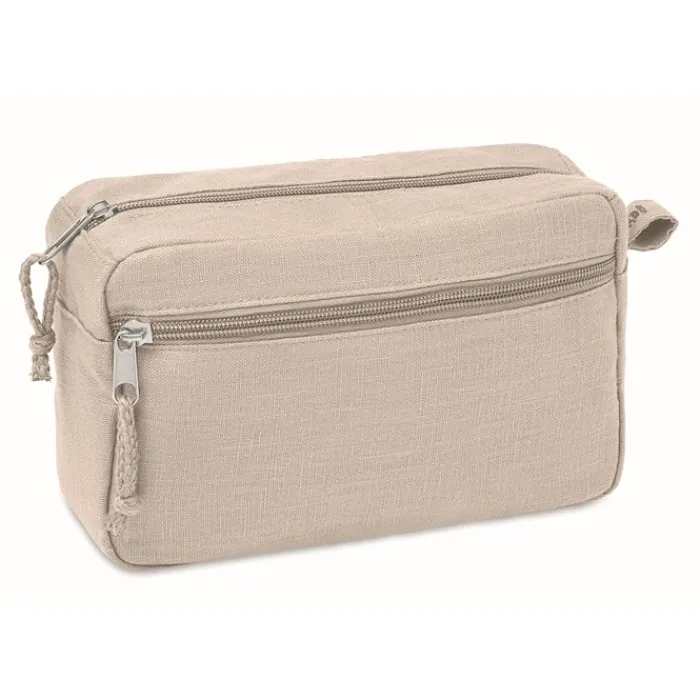 Porta trucchi con doppia tasca e chiusura zip, realizzato in canapa al 100% da 200gr.