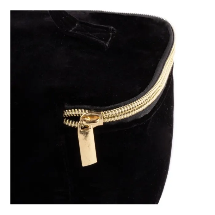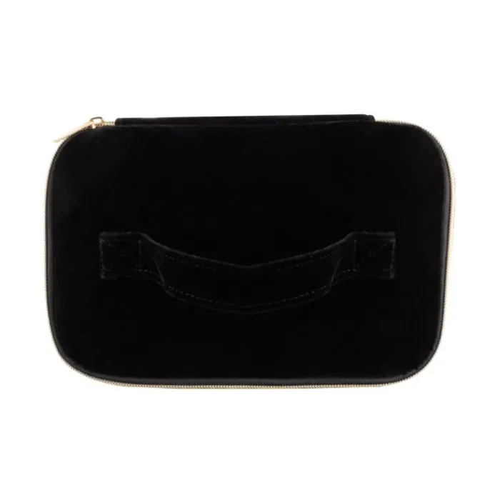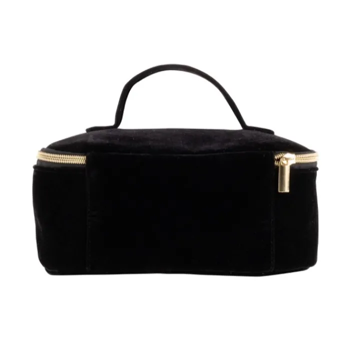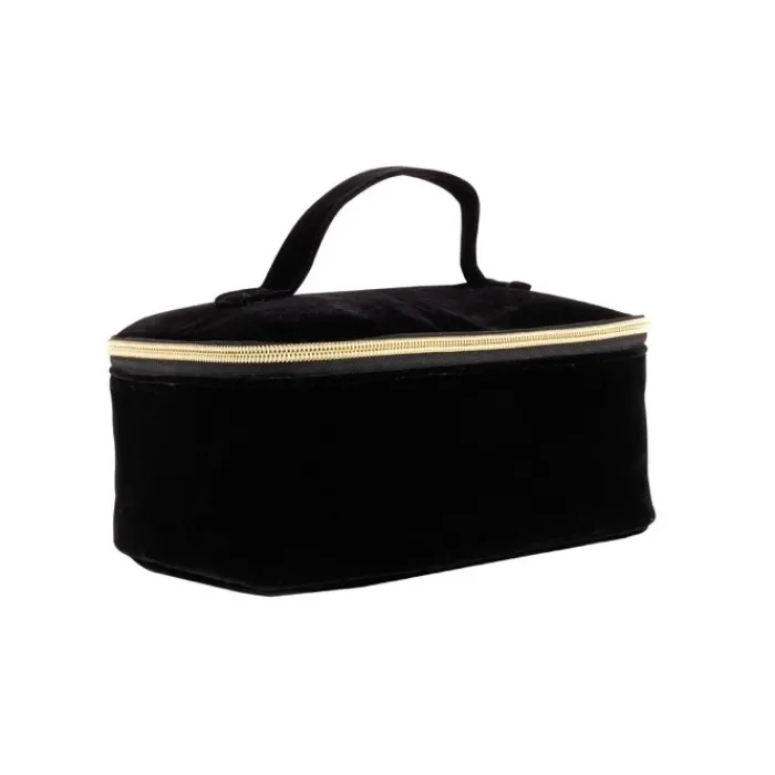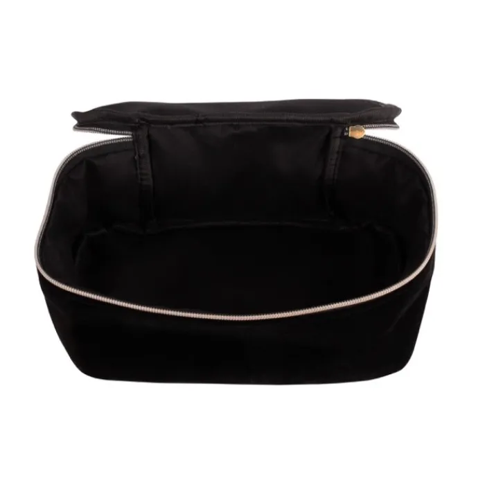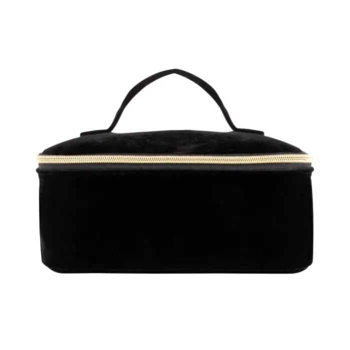Beauty case di grande capacità con maniglia, realizzato al 100% in velluto di poliestere 280 g/m². PVC free.