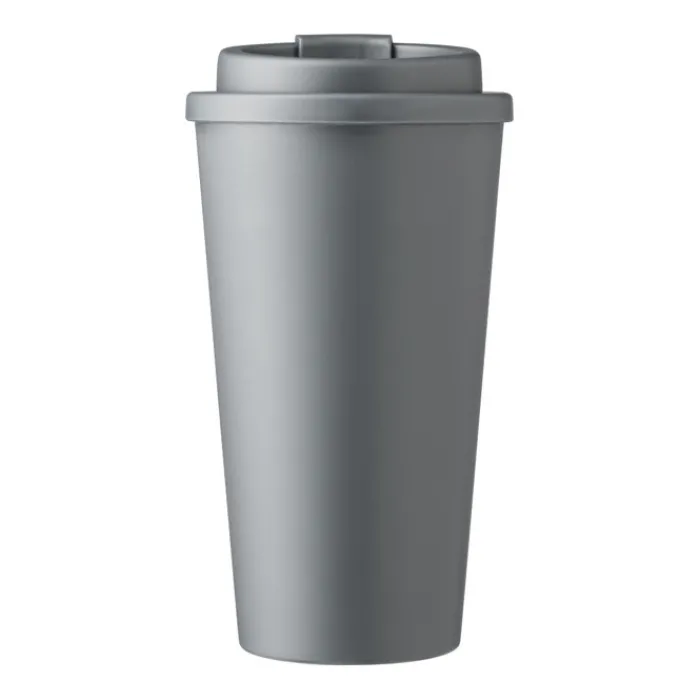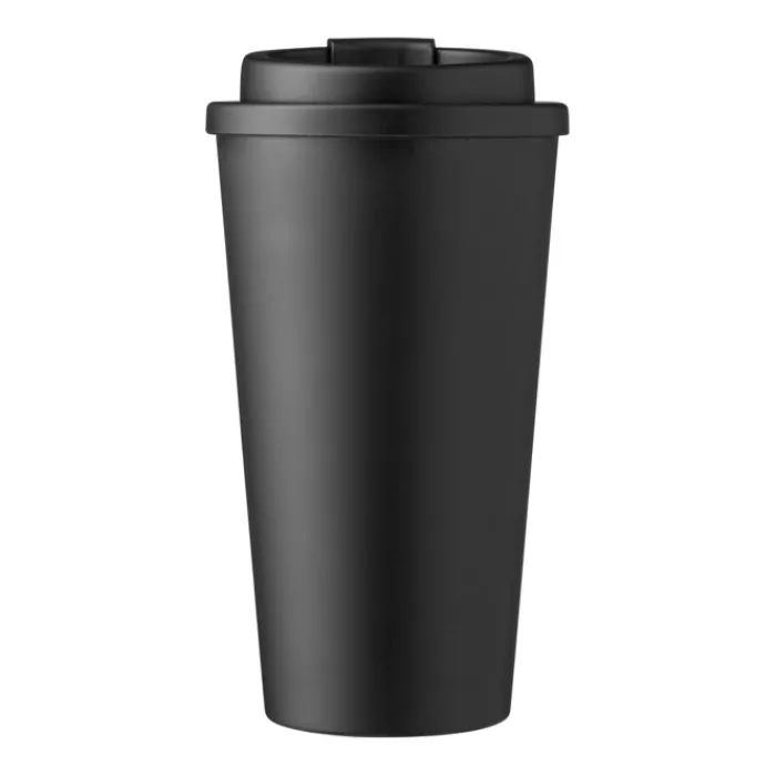 Bicchiere da asporto in PP da 475 ml. Presenta un tappo a vite con apertura scorrevole.