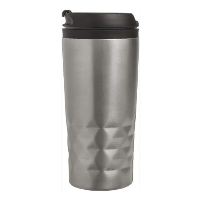 Tazza termica da viaggio a doppia parete, realizzata in acciaio inox. Capacità 300 ml.