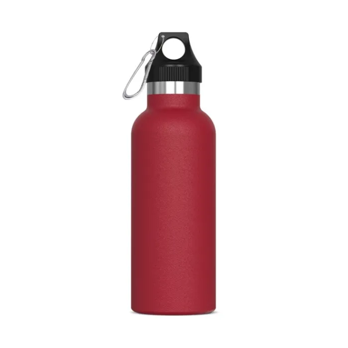 Borraccia in acciaio inossidabile a doppia parete con isolamento sottovuoto da 500ml. Mantiene la bevanda all’interno alla giusta temperatura più a lungo, grazie al vuoto tra le pareti. Le bevande rimarranno calde fino a 12 ore e/o fredde fino a 24 ore. Il tappo a prova di perdite comprende un piccolo moschettone. Ha un rivestimento in polvere che gli dona un aspetto più pregiato. È consegnata in una confezione regalo. Non lavare in lavastoviglie. Non inserire nel microonde.