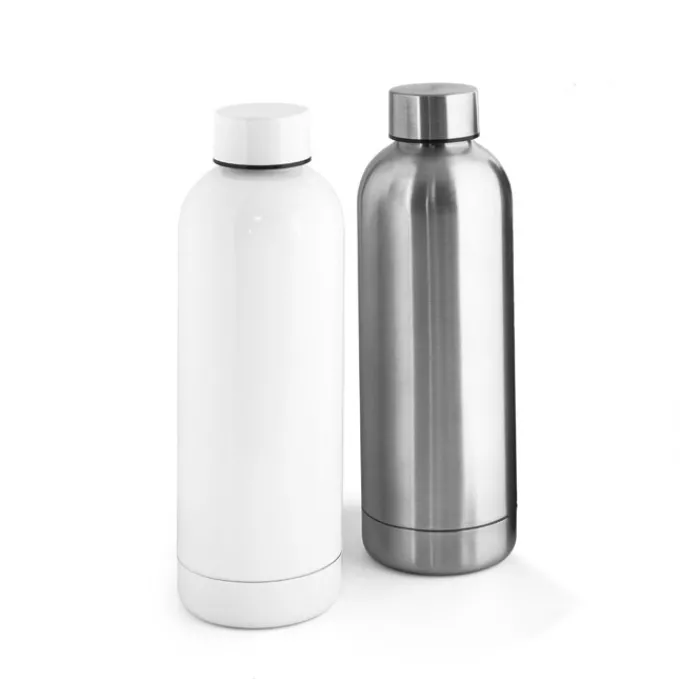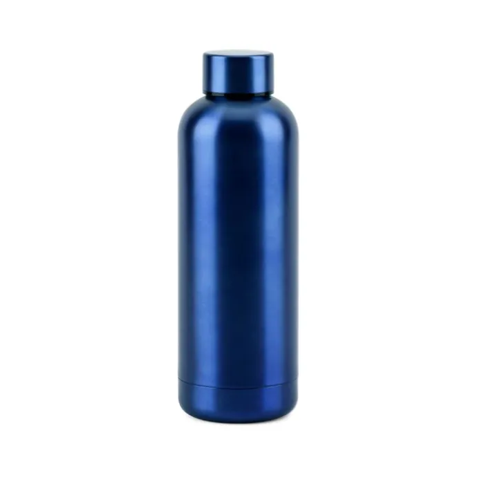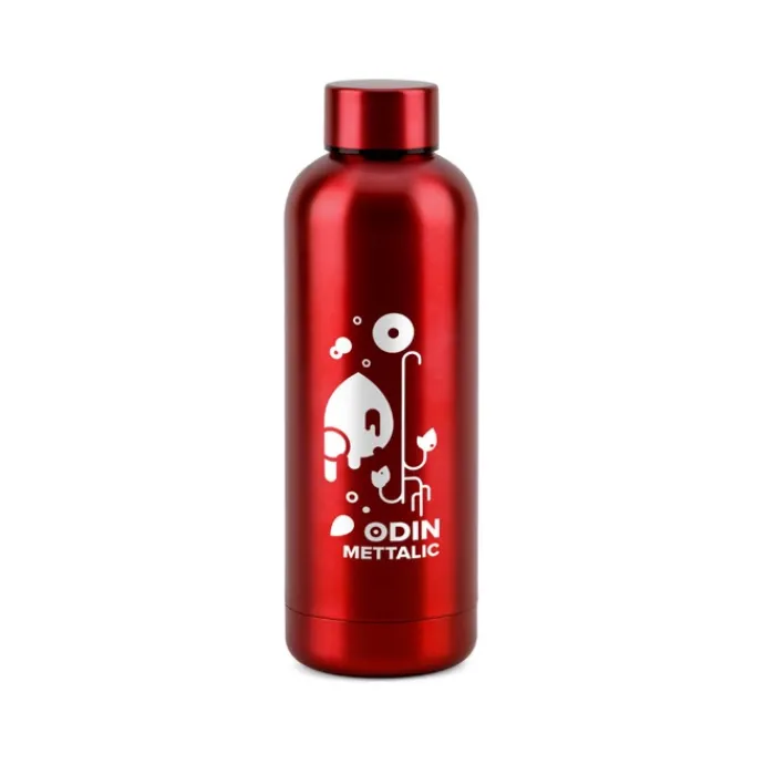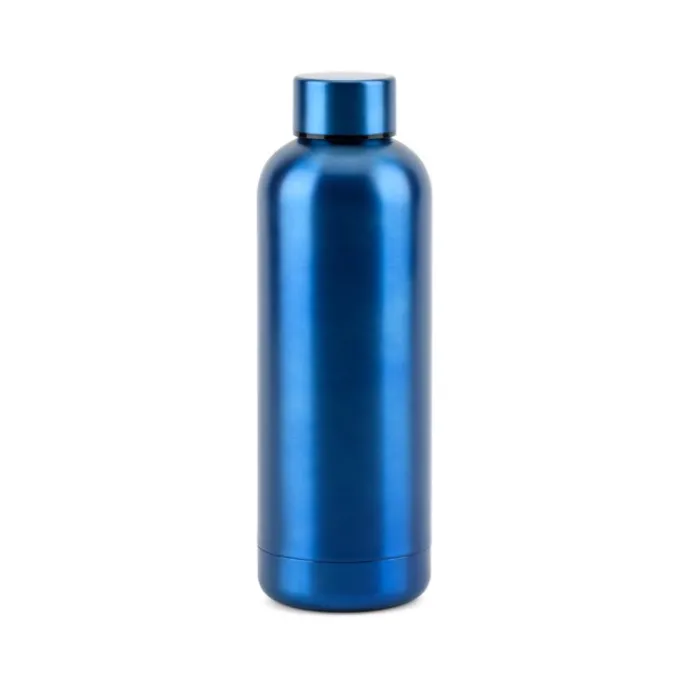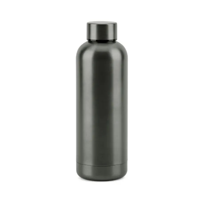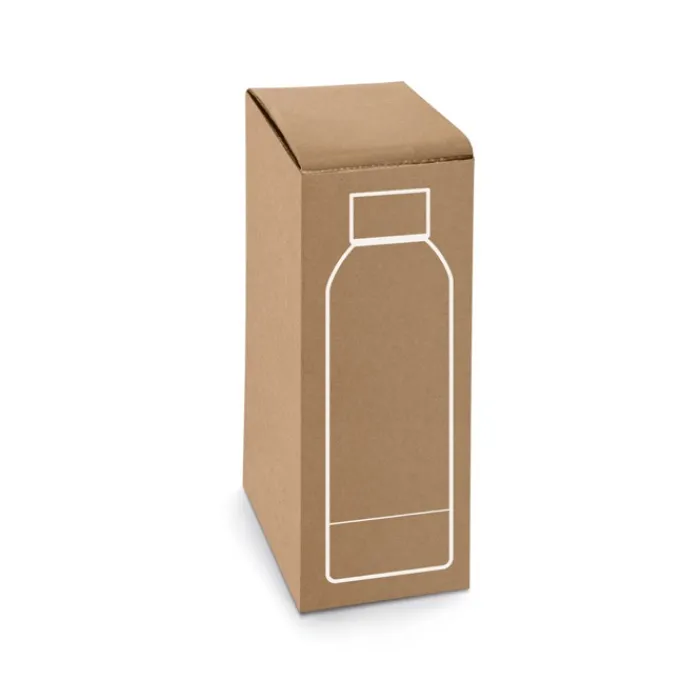 Borraccia realizzata con il 90% di acciaio inox riciclato. Finitura opaca metallizzata e doppia parete isolata sottovuoto. Capacità fino a 550 ml. Fornita in una confezione regalo di carta kraft.