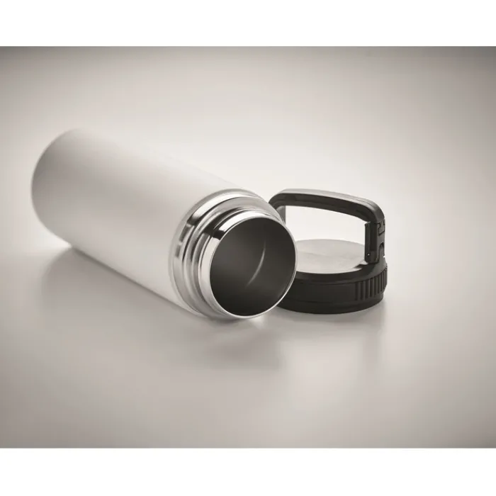 Borraccia in acciaio inossidabile a doppia parete isolata sottovuoto con manico sul tappo. Capacità: 500 ml.