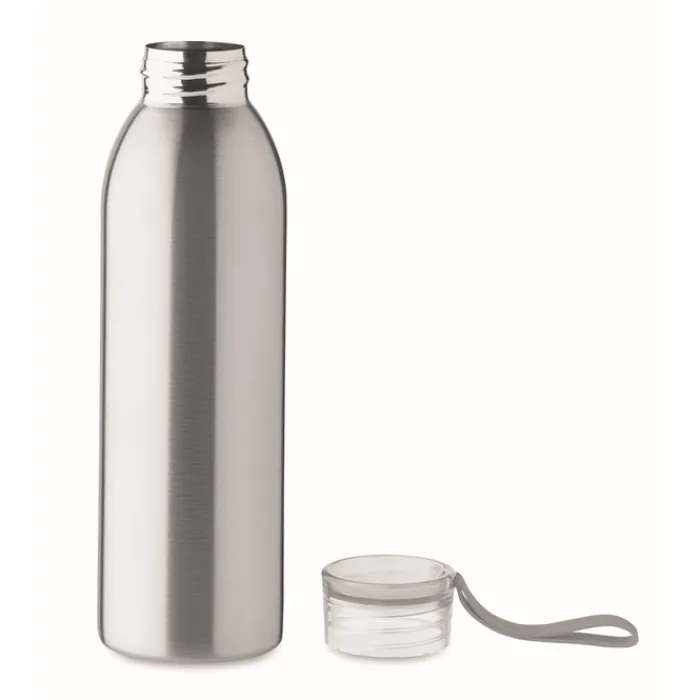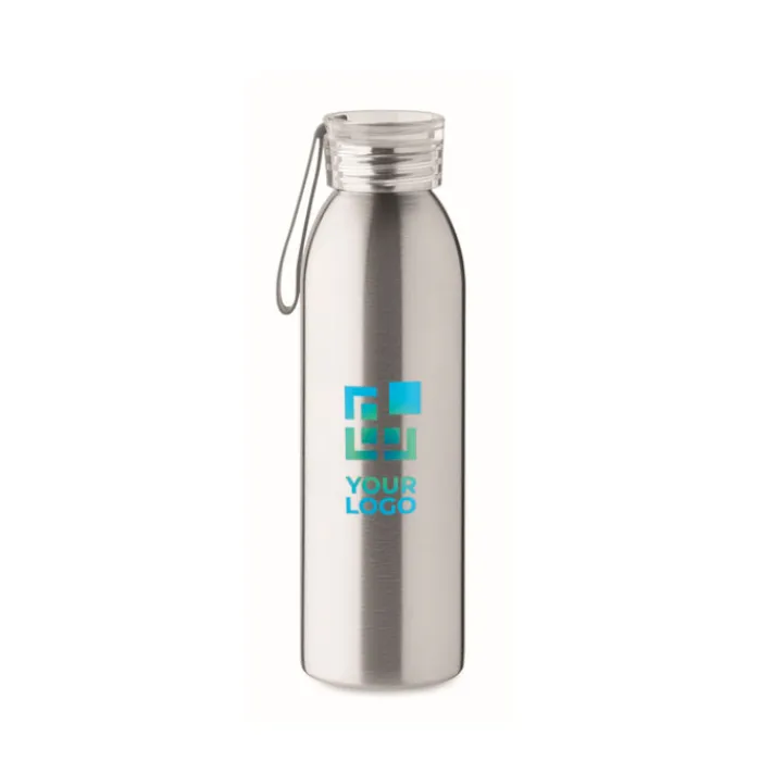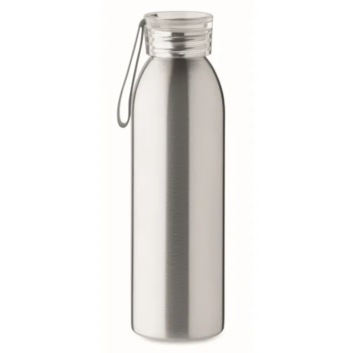 Borraccia in acciaio inox a singolo strato con tappo in PP e laccetto di silicone abbinato. Capacità: 650 ml.