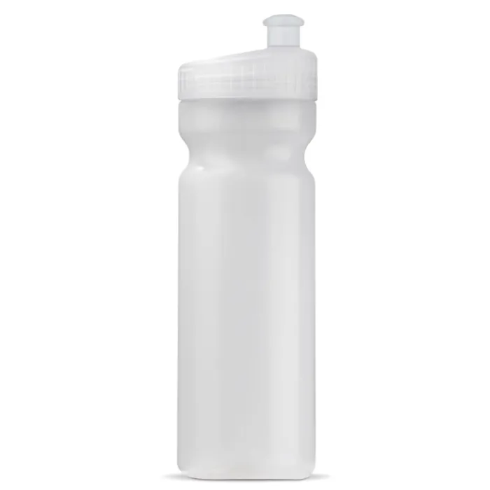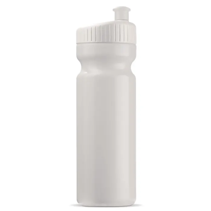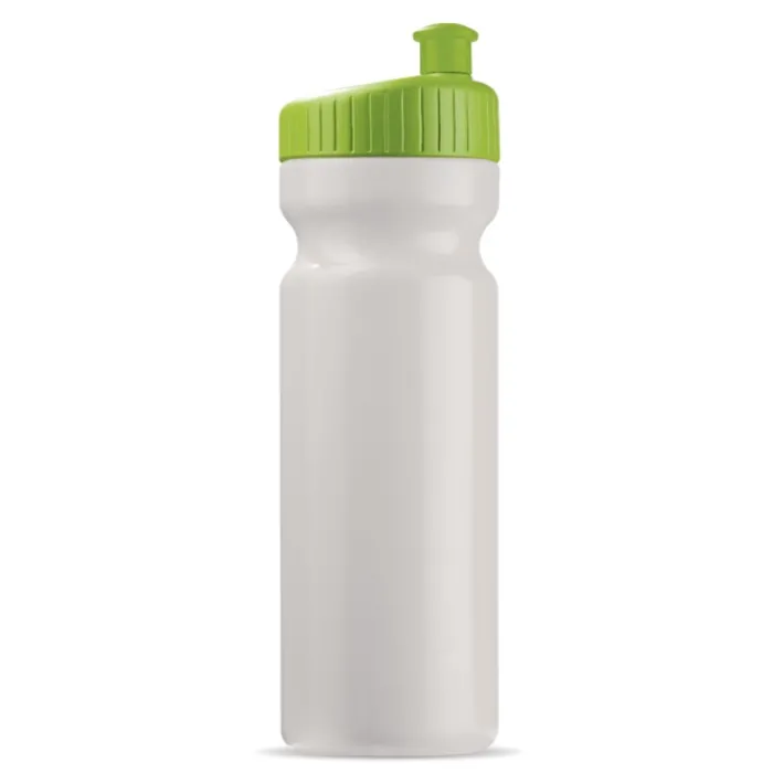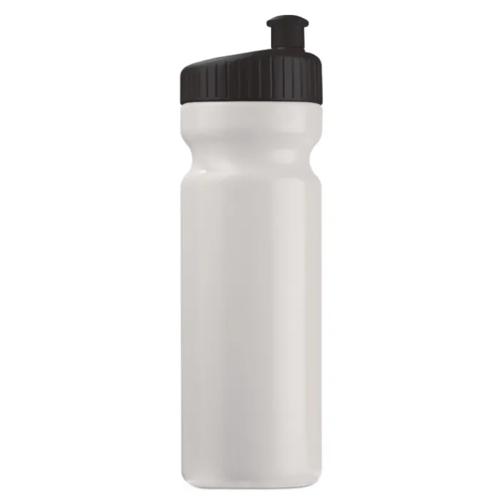 Borraccia sportiva da 750 ml con corpo bianco e tappo colorato con beccuccio ergonomico. Disponibile anche in versione total black. Tappo al 100% a prova di perdite. Personalizzabile a 360°. Realizzata con plastica LDPE e PP completamente BPA free. Se personalizzata non lavare in lavastoviglie. Non inserire nel microonde. Non adatta per bevande calde.