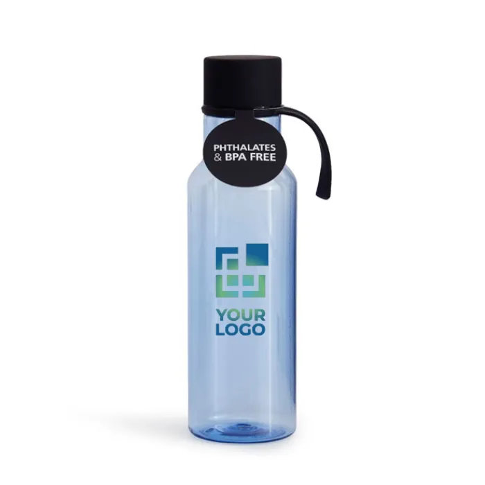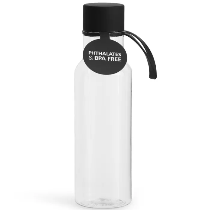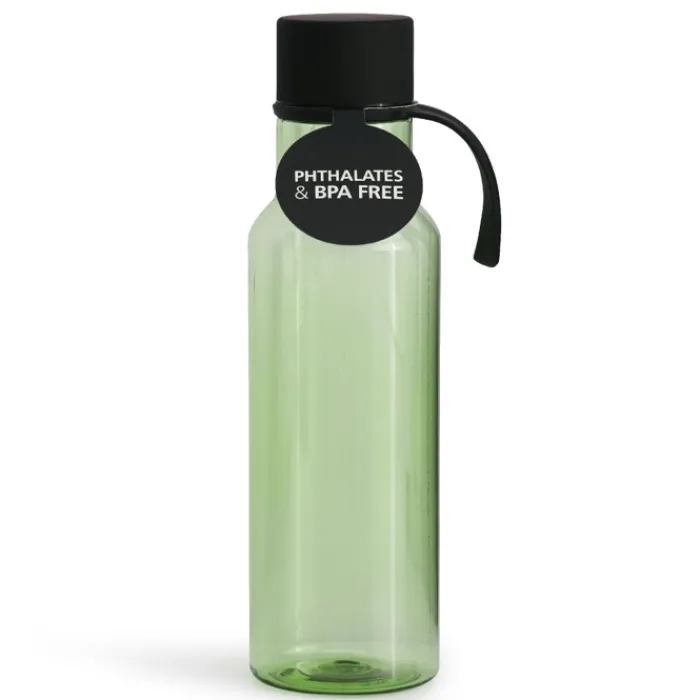Elegante e pratica borraccia in tritan senza BPA. Il tappo, a prova di perdite in acciaio inossidabile, è rivestito in gomma nera per una buona presa durante l’apertura e presenta un laccetto coordinato. Capacità: 600ml.