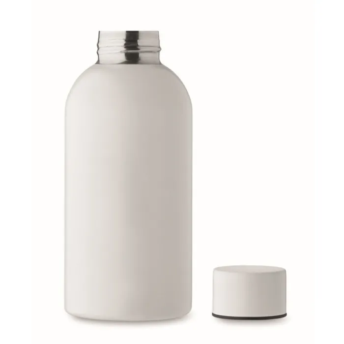 Borraccia a parete singola realizzata al 90% con acciaio inox riciclato e al 10% con acciaio inox. Tappo anti goccia. Capacità 500 ml.