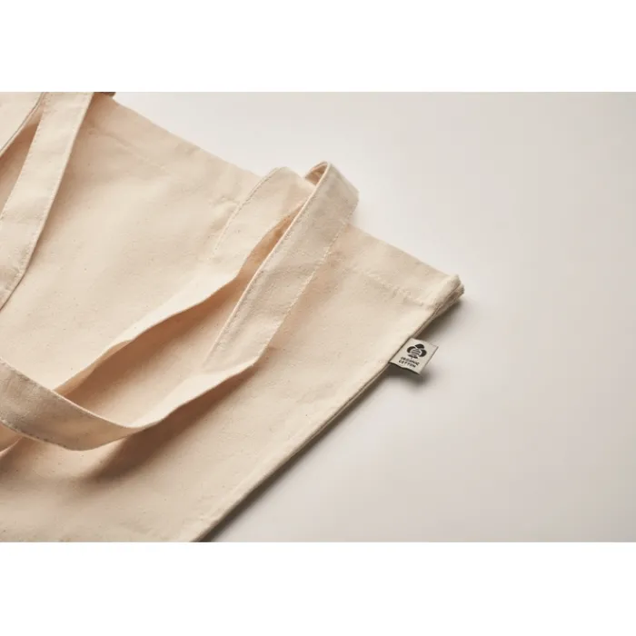 Shopper in cotone biologico da 220 gr/m², con manici lunghi e soffietto.