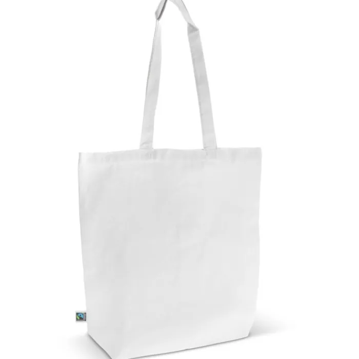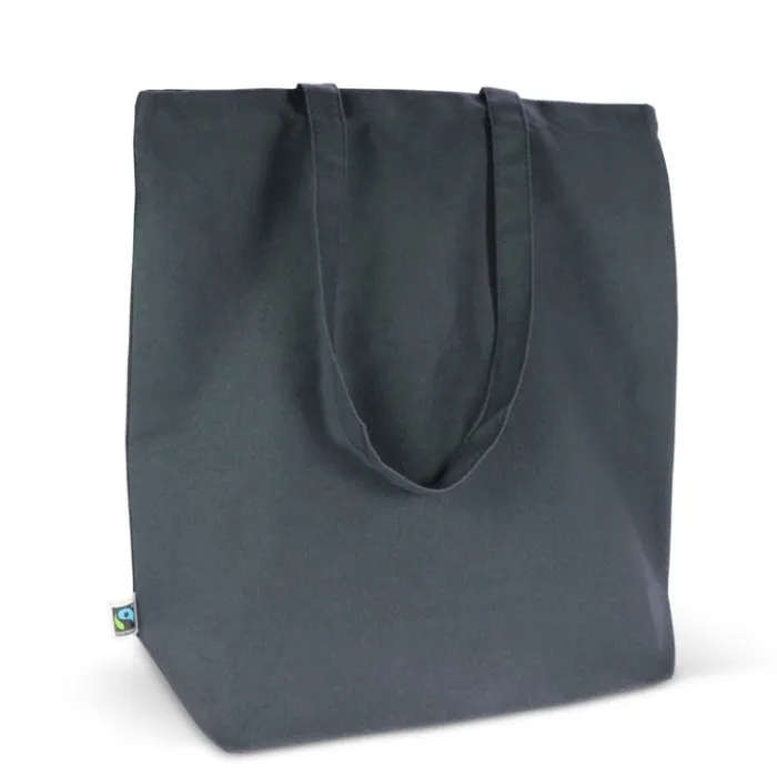 Borsa in cotone Fairtrade da 270g/m². Realizzata nel rispetto dell’etica e della sostenibilità, è una scelta coscienziosa che conta davvero. Supporta un peso massimo di 12kg.
