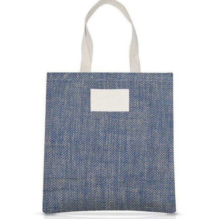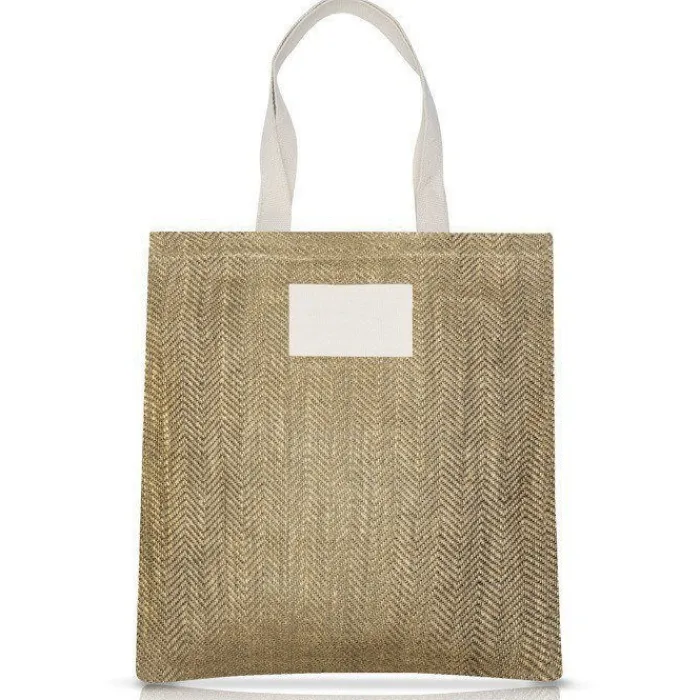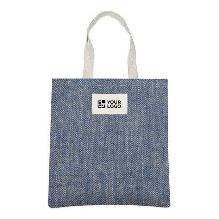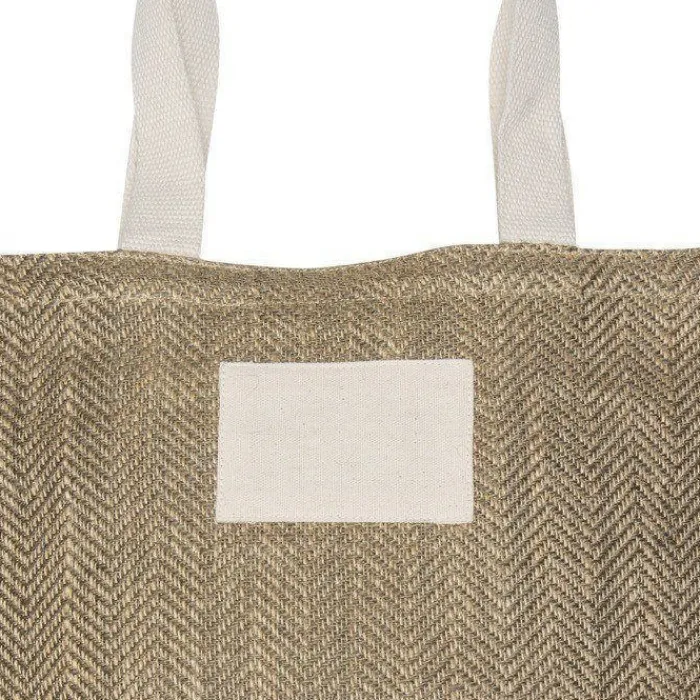 Borsa in juta con manici in 100% cotone. Realizzata con un moderno motivo a zig-zag, che offre un effetto diverso e originale. Disponibile in quattro colori differenti.