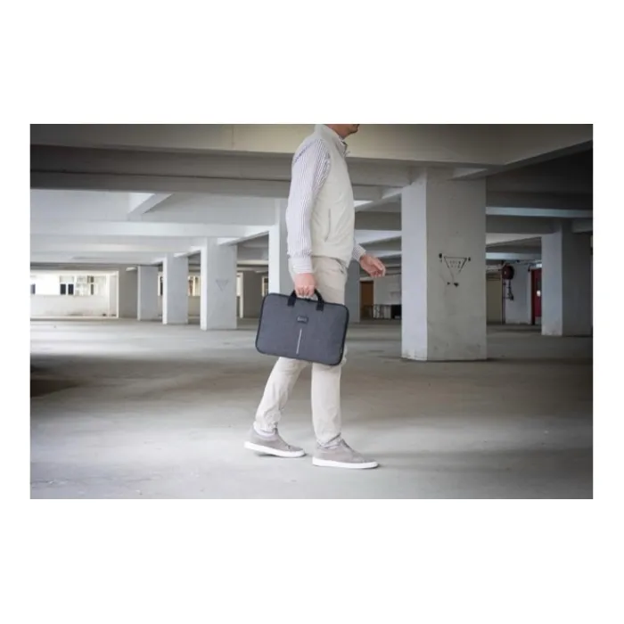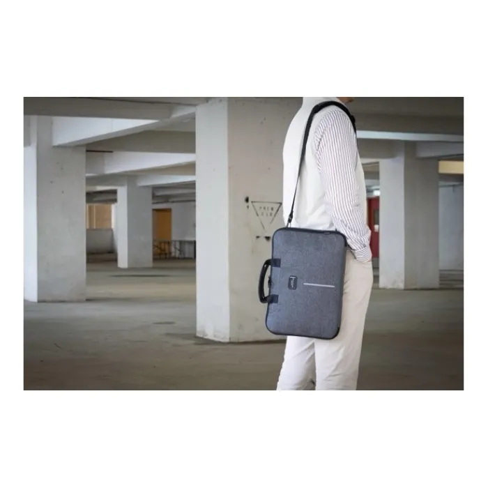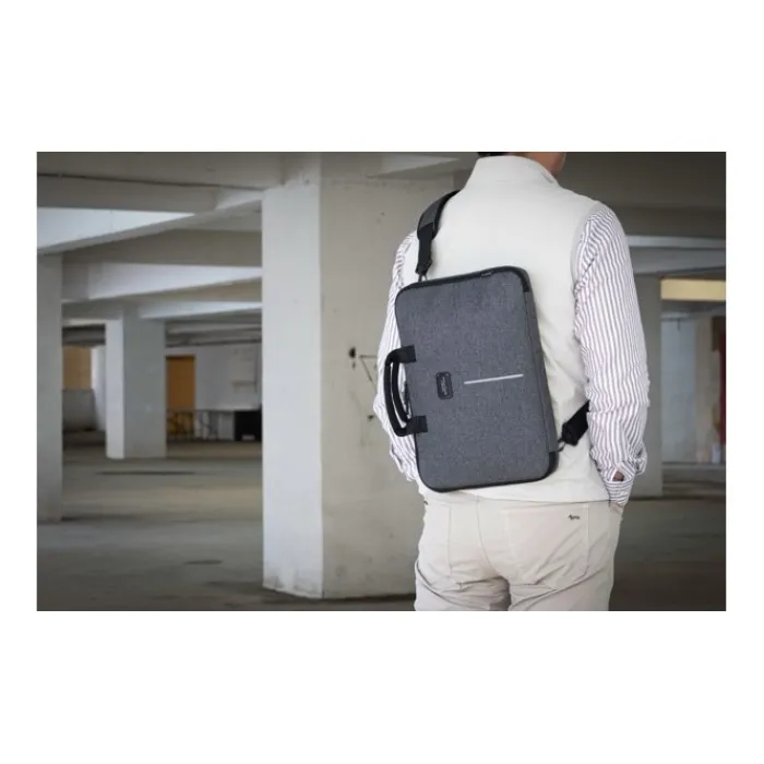 La borsa porta PC è un supporto versatile e multifunzionale che si trasforma in 3 modalità: a mano, a tracolla e a spalla. Realizzata con bottiglie di PET riciclato, dispone di un ampio scomparto principale e di una custodia imbottita che si adatta a un laptop da 16”, oltre a molteplici tasche per tablet, telefono, caricabatterie, cavi e altro. Il tessuto Touring, durevole e resistente all’acqua e alle macchie, protegge i tuoi effetti personali da graffi, schizzi e urti, rendendo questa borsa ideale per viaggi, lavoro o uso quotidiano.