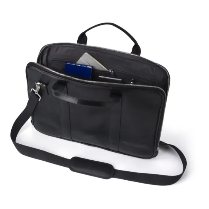 Borsa porta computer da 15 pollici in pelle con due manici corti ed una tracolla regolabile in nylon. Ha 4 scomparti interni: 2 tasche, uno scomparto con chiusura lampo e uno scomparto per pc con chiusura in velcro.
