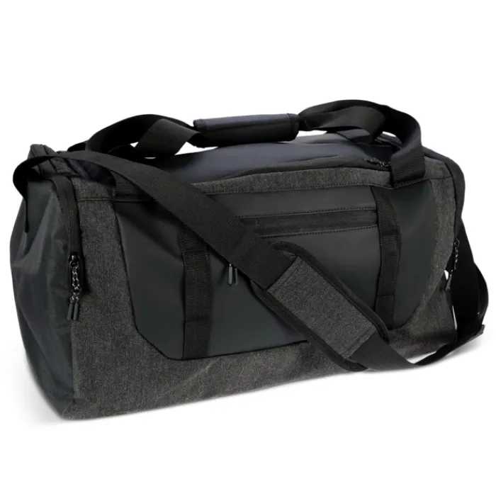 Borsone sportivo realizzato con materiali in PET riciclato, è un compagno di viaggio chic e sostenibile. Tasca piccola sul davanti, scomparto per scarpe. Manici e tracolla regolabile. Grazie all’ampio spazio e ai dettagli di stile, ti assicura un viaggio all’insegna della moda e del comfort ecologico. Metti in valigia i tuoi oggetti essenziali per una fuga consapevole. Capacità: 30 litri.