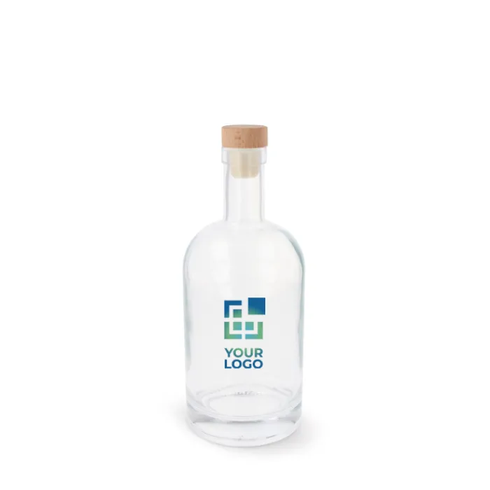 Bottiglia di vetro da 500 ml, dotata di un elegante tappo a pressione in legno di FSC. Se personalizzata non lavare in lavastoviglie.