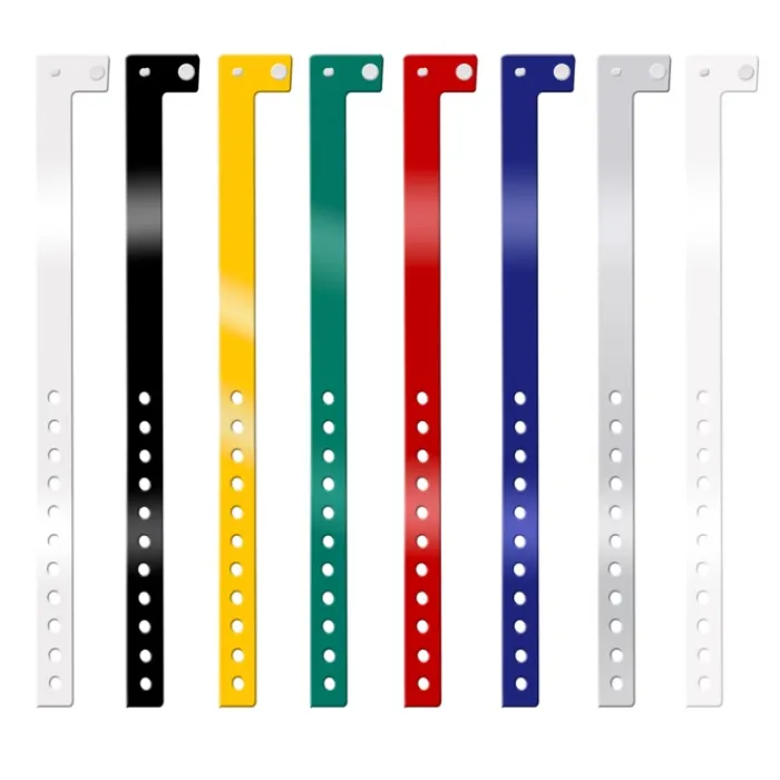 Braccialetto identificativo regolabile in vinile. È resistente all’acqua e antimanomissione. Disponibile in una gamma di colori diversi. Perfetto per feste, eventi o luoghi in cui sia necessario controllare gli accessi. Si vende in multipli di 50 unità.