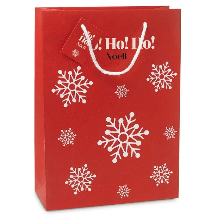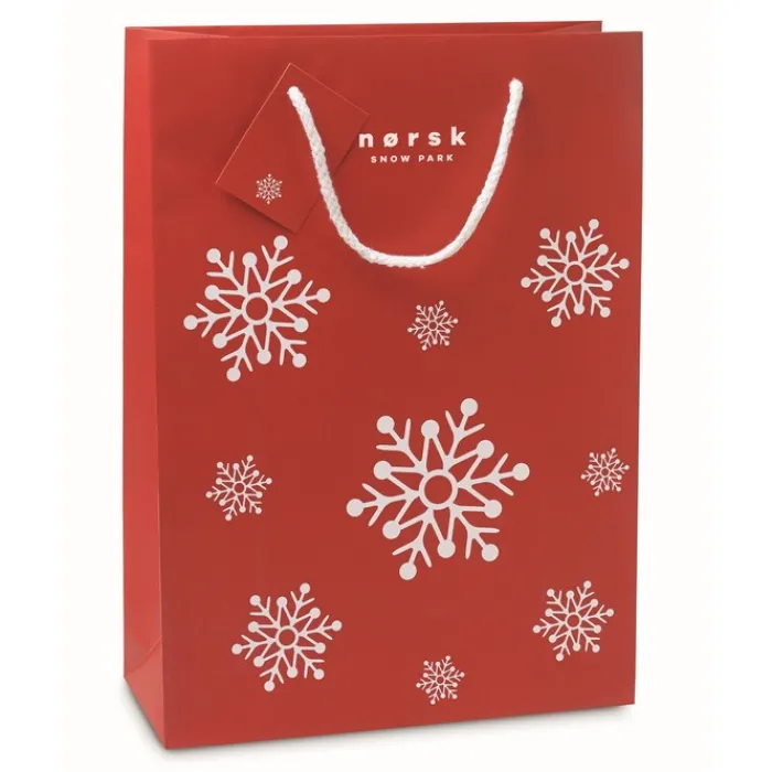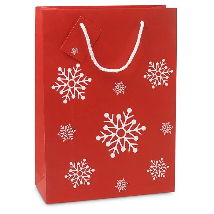 Busta regalo natalizia con fiocchi di neve. Include un bigliettino per scrivere un messaggio. Misura grande.