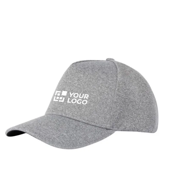 Cappellino elasticizzato a 5 pannelli con pannello anteriore strutturato. Visiera precurvata. Asole ricamate per l’aerazione. Chiusura con fibbia in metallo. Circonferenza della testa: 58 cm.
