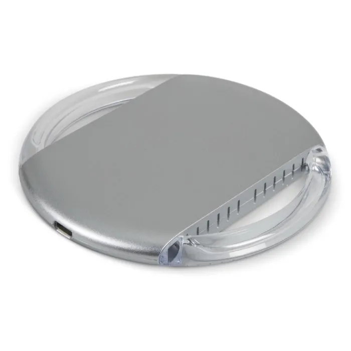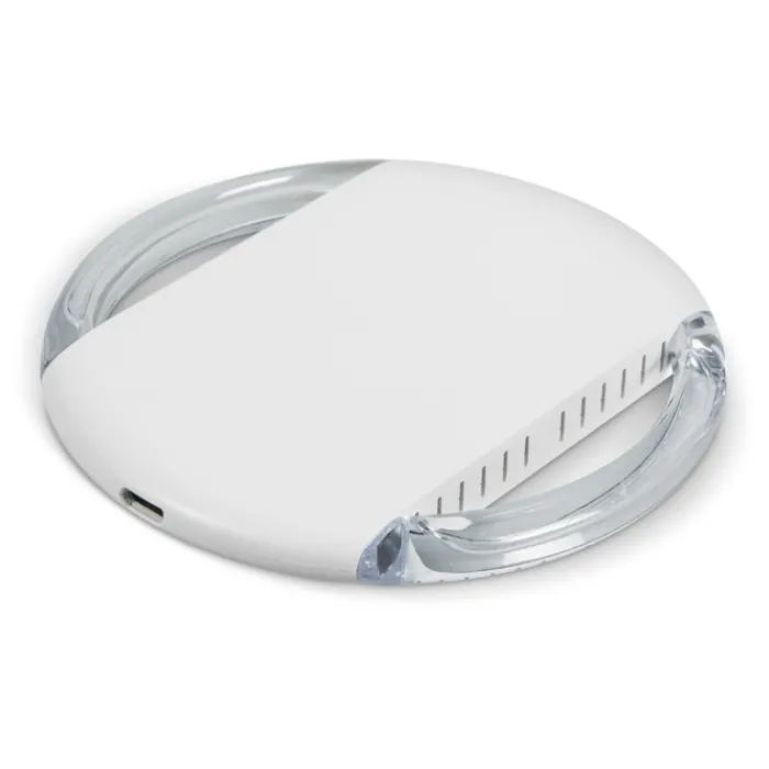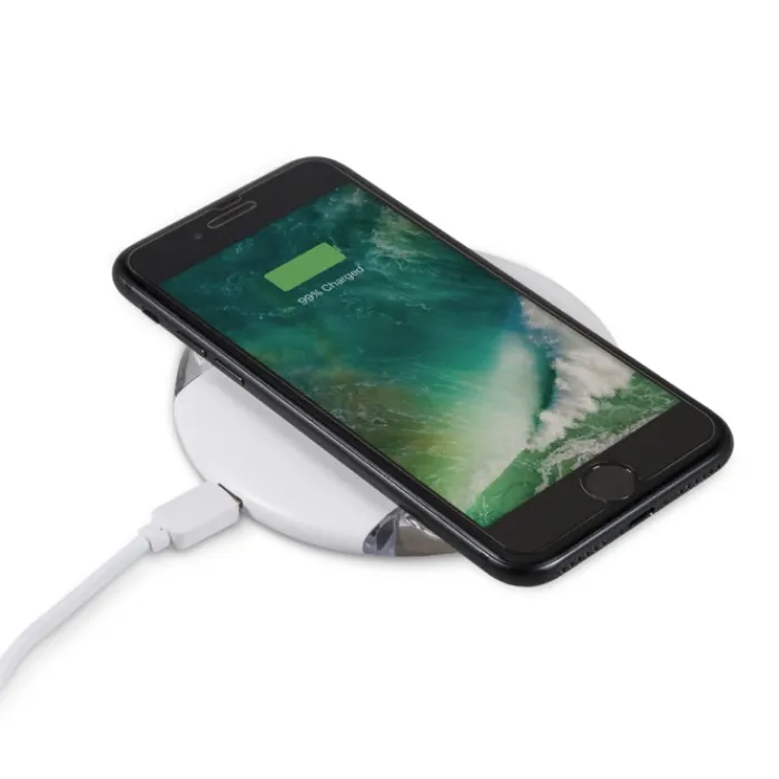 Caricatore wireless da 5 W con un design alla moda. Collegalo al tuo dispositivo e ricarica facilmente il telefono senza utilizzare un cavetto di ricarica. Compatibile con i dispositivi che hanno la funzione di ricarica wireless (standard Qi). Le parti trasparenti del prodotto si illuminano durante la ricarica. Ingresso: DC 5V/1000mA. Uscita: DC 5V 800mA. Distanza di ricarica: 4 a 6mm. Efficienza di ricarica: ≥70%. Cavetto da USB a Micro USB. Manuale di istruzioni in EN, NL, DE, FR e IT.