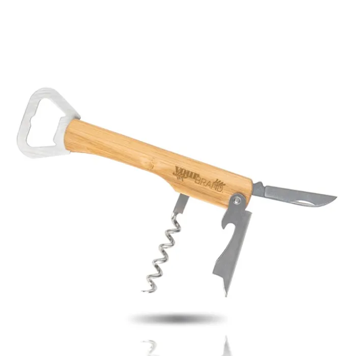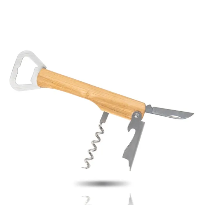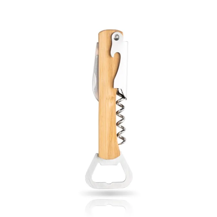 Cavatappi in bambù e acciaio inossidabile con apribottiglie e coltellino. Un regalo completo, per permetterti di condividere il tuo vino quando vuoi e con chi vuoi.