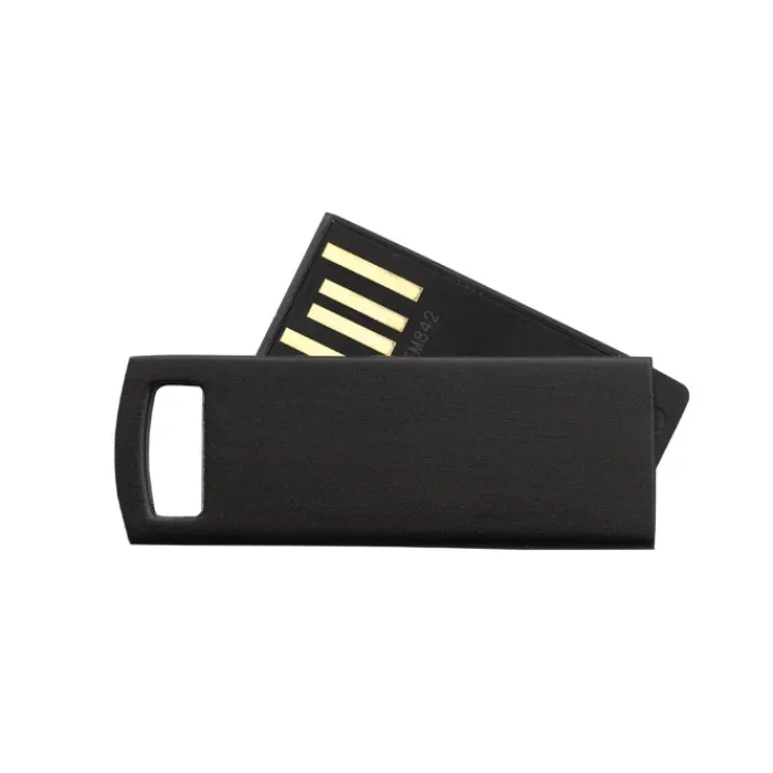 Memoria USB ultrasottile in alluminio con meccanismo girevole. Una soluzione compatta e sicura per trasferire file e archiviare dati offline.