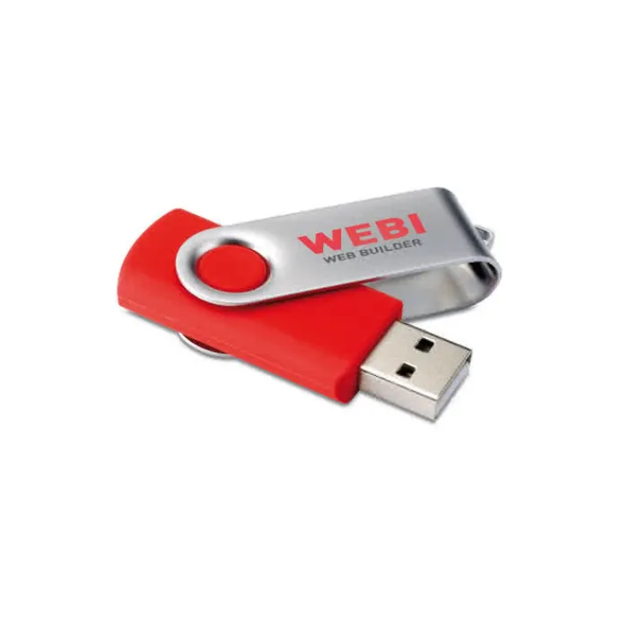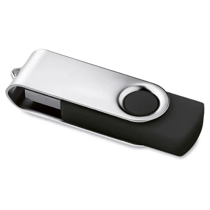 Una memoria USB 2.0 semplice, economica e molto pratica, ideale come regalo per soci, visitatori e clienti durante fiere, congressi o campagne promozionali. Si distingue per il corpo in gomma disponibile in diversi colori, completato da una clip metallica girevole personalizzabile. Puoi scegliere tra varie capacità di archiviazione: 1 GB, 2 GB, 4 GB, 8 GB, 16 GB, 32 GB, 64 GB, 128 GB e 256 GB. Il tuo logo può essere stampato sia sul lato anteriore che posteriore, con possibilità di marcatura tramite serigrafia, stampa digitale o incisione laser.
