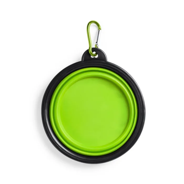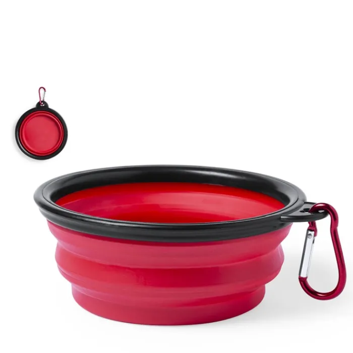 Ciotola pieghevole per animali domestici in resistente materiale TPR. Progettata per solidi e liquidi, con capacità di 450 ml e moschettone in metallo abbinato. Disponibile in un’ampia gamma di colori.
