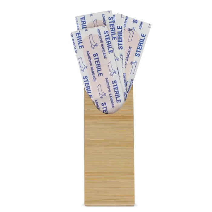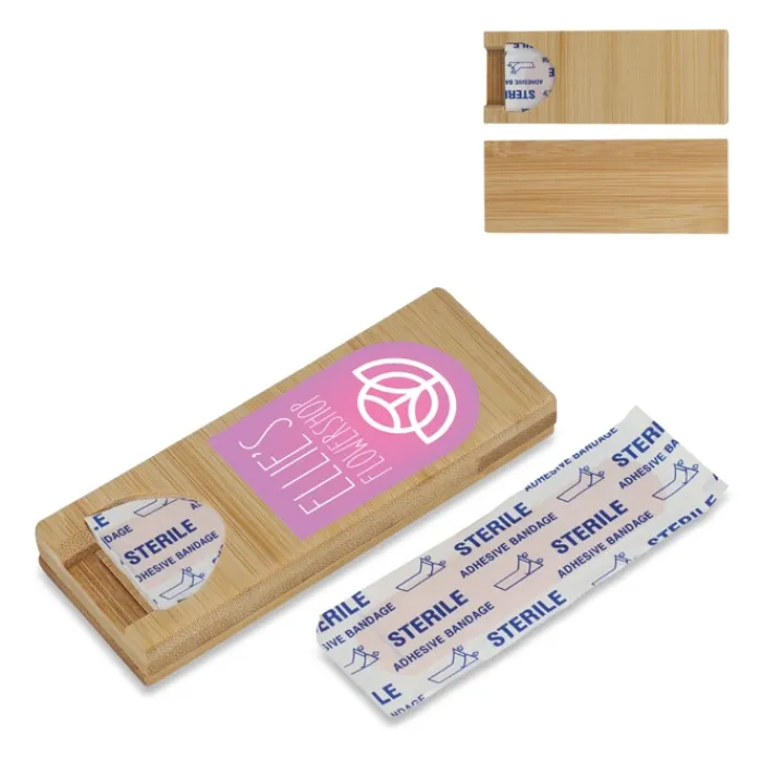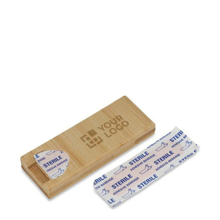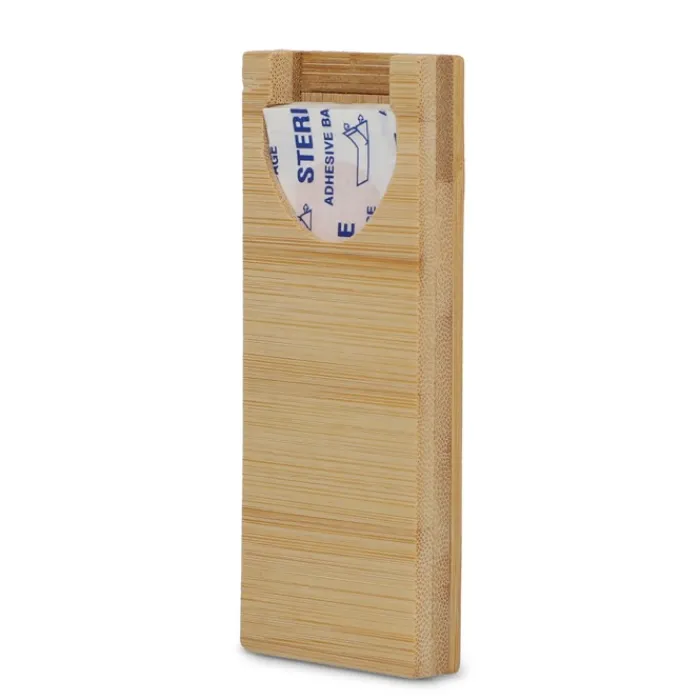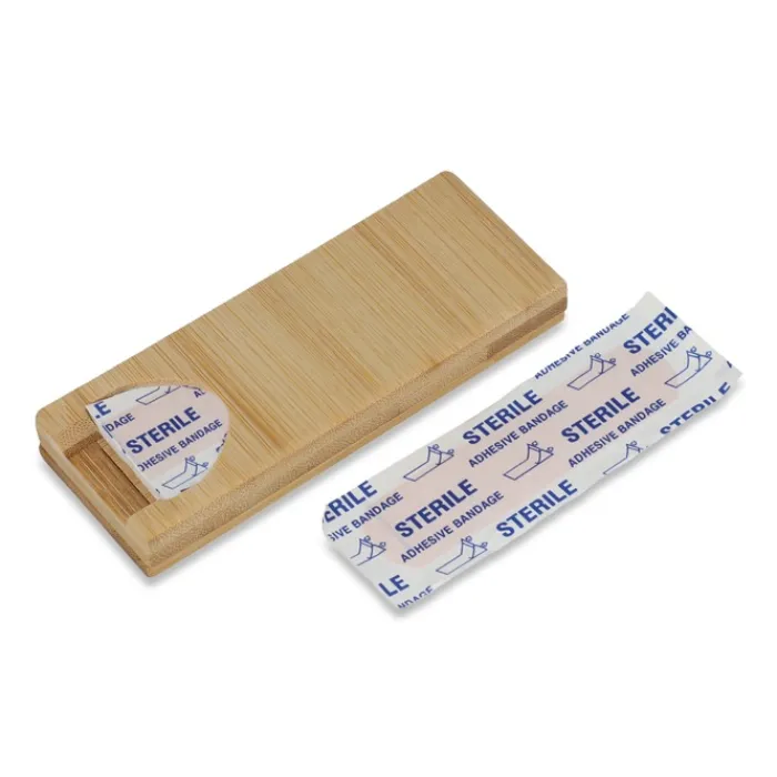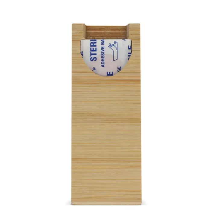 Contenitore in bambù con 10 cerotti. Sostenibile, elegante e perfetto per superficiali primi soccorsi.