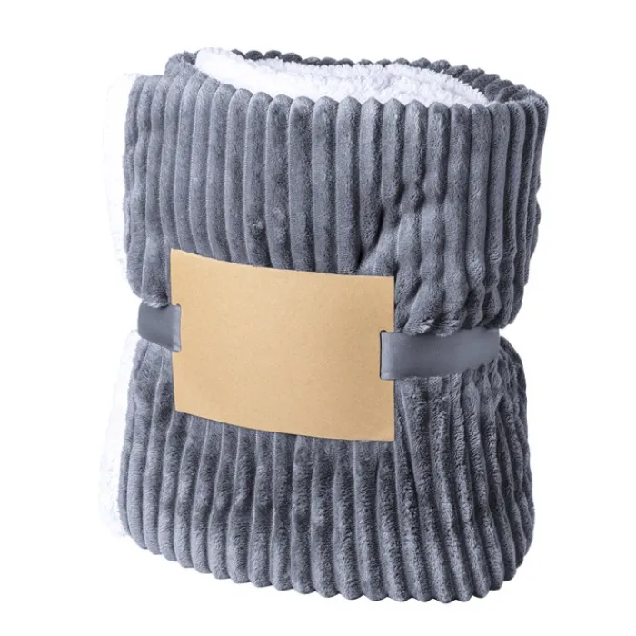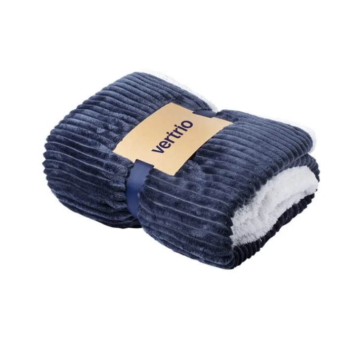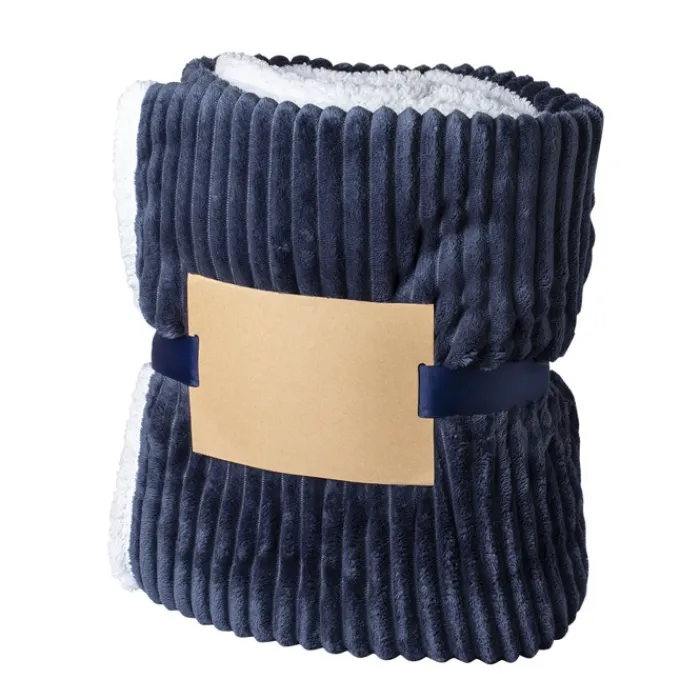 Morbida e calda coperta in pile vellutato e sherpa da 440g/m². In elegante design bicolore. Confezionata singolarmente con nastro corrispondente e foglio di cartone riciclato personalizzabile.
