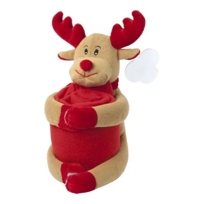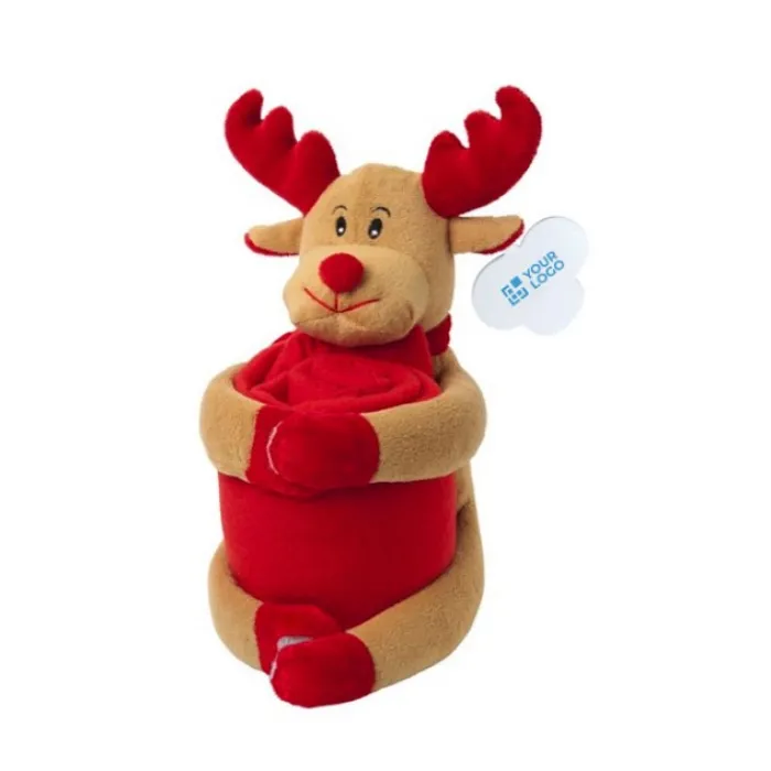 Coperta 100% in pile di poliestere da180 gr/m². Consegnata avvolta da una renna di peluche con etichetta per la stampa.