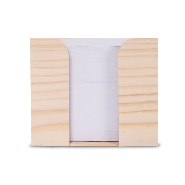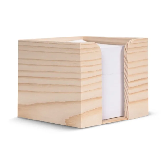 Cubo di legno porta notes completo di 650 foglietti di carta riciclata bianca da 90g/m².