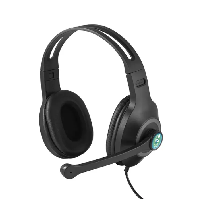 Cuffie regolabili con microfono in ABS e PP. Controllo del suono a 4 pulsanti: volume su/giù, microfono disattivato e muto. Risposta in frequenza 20Hz-20KHz, impedenza 32Ω, cavetto da 1,85 cm e connessione USB A. Fornite in una confezione regalo nera.