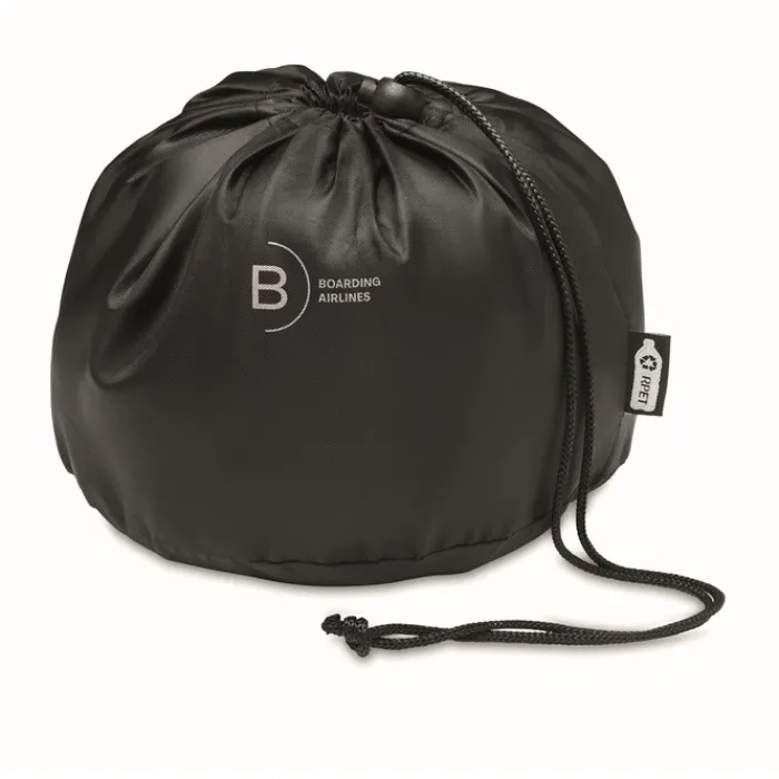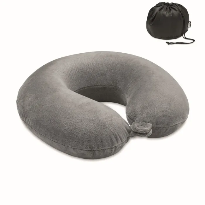 Cuscino da viaggio realizzato con tessuto ultra crystal e schiuma. Il tutto confezionato in un sacchetto di poliestere 210D RPET.