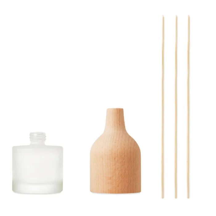 Diffusore di aromi con 3 bastoncini. Realizzato in legno di faggio e vetro. Fragranza di giglio e gelsomino. Capacità 30 ml. Trattandosi di legno naturale possono verificarsi variazioni di colore tra i vari articoli.