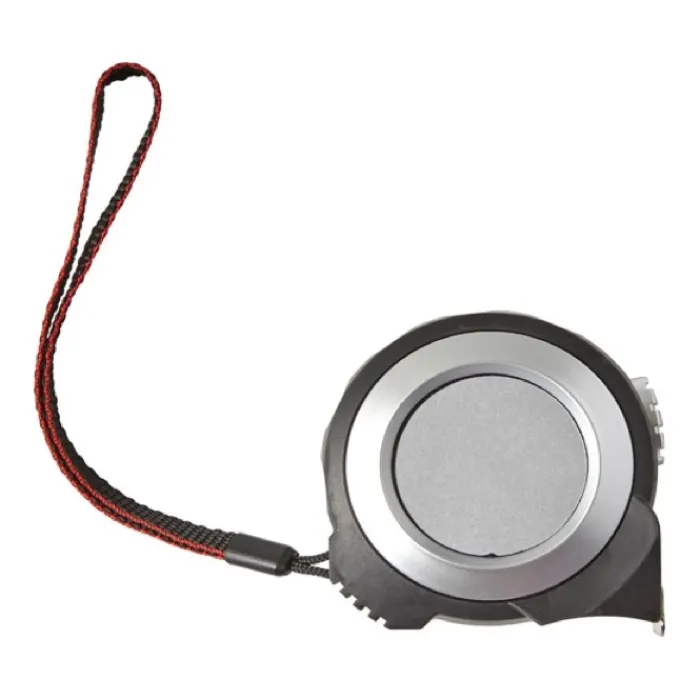 Flessometro da 5 metri in ABS con clip per agganciarlo alla cintura, bottone d’arresto e cinturino da polso. Sistema metrico in centimetri e pollici.