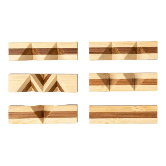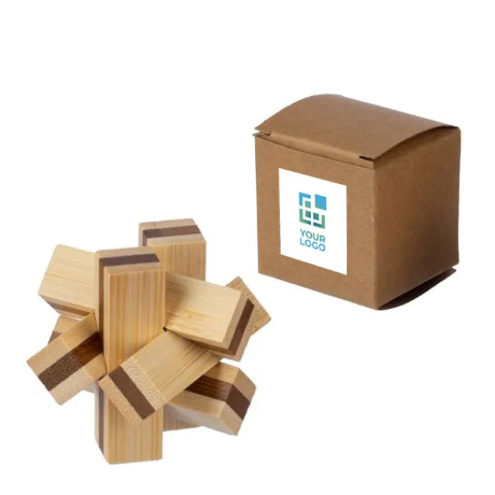 Gioco di pazienza in legno di bambù. Confezionato singolarmente in una scatola di cartone marrone.