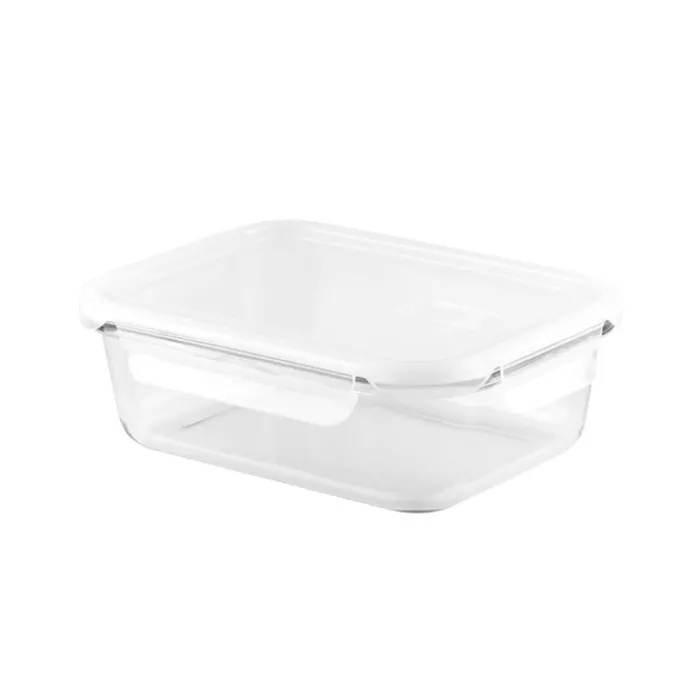 Contenitore ermetico in vetro borosilicato, con coperchio in PP e guarnizione in silicone. Rimosso il coperchio, il contenitore è adatto all’uso in microonde e lavatrice. Capacità fino a 1 L