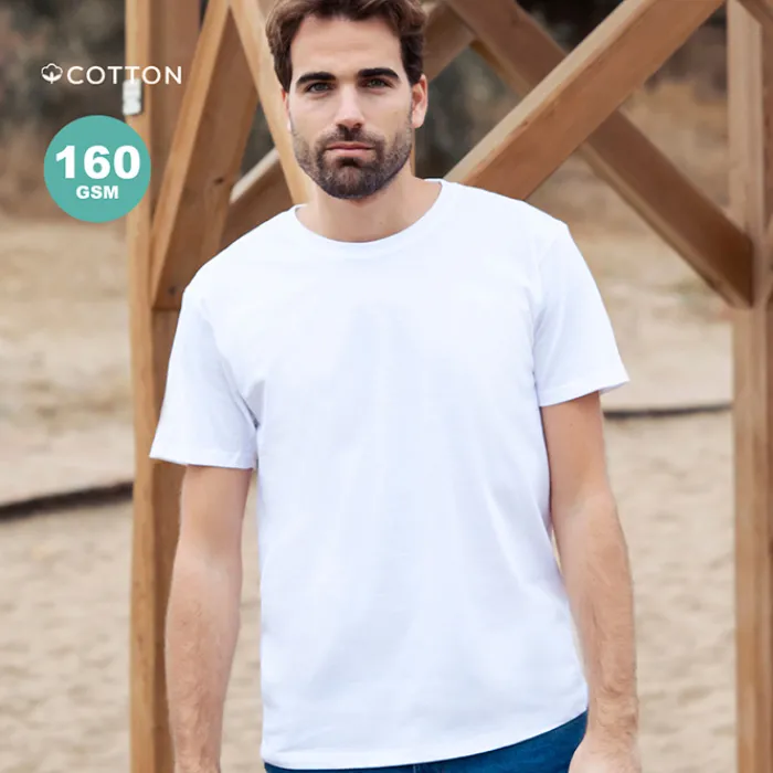 T-shirt da adulto realizzata in morbido cotone da 160g/m² ring spun. Con design tubolare senza cuciture laterali e girocollo. Disponibile in bianco e nelle taglie S, M, L, XL, XXL, 3XL.