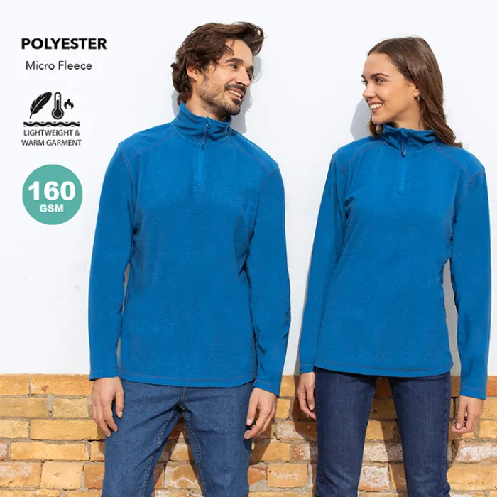 Maglioncino in pile unisex, realizzato in caldo e morbido pile pettinato da 160 g/m², con effetto mélange. Cerniera da 1/4 in tinta, con patta per coprire la cerniera. Trattamento Anti-Pilling. Disponibile in vari colori e taglie XS, S, M, L, XL, XXL.