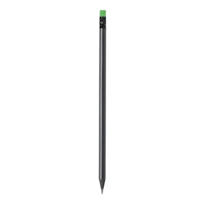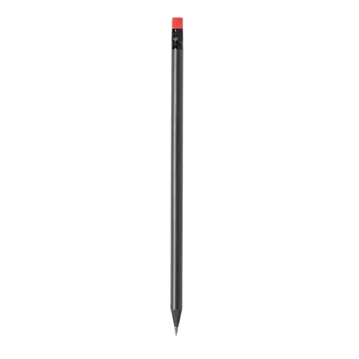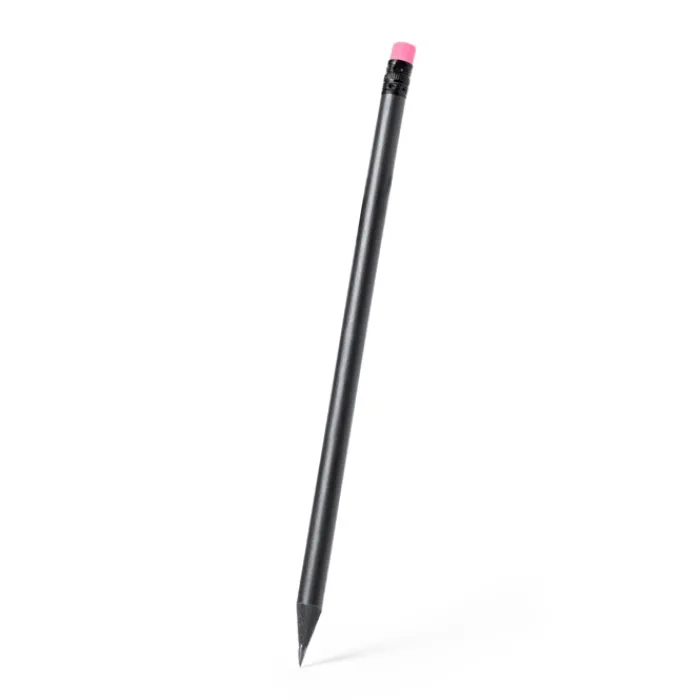 Elegante matita nera in legno naturale, con pratica gomma da cancellare disponibile in vari colori. Con mina nera e punta affilata.