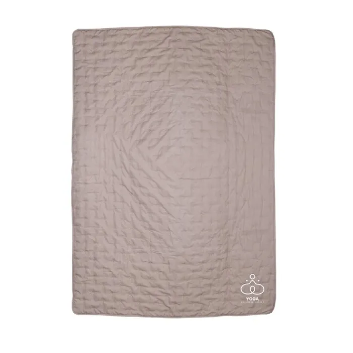 Coperta morbida al tatto da 120 x 160 cm realizzata in poliestere da 90 gr/m² con imbottitura in poliestere da 110 gr/m². Presentata piegata con nastro di cotone di colore naturale.