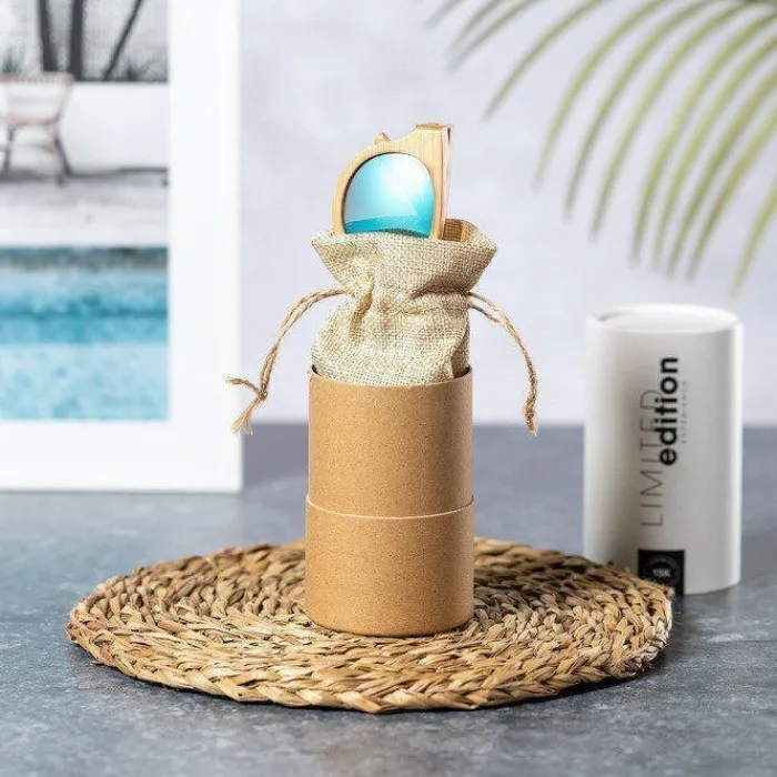 Occhiali da sole con esclusivo design Limited Edition. Montatura e aste in bambù dal design elegante con lenti a specchio. Custodia per il trasporto con chiusura a coulisse inclusa. Protezione UV 400. Presentato in una custodia Limited Edition Experience, dal design unico e protetto da diritti di proprietà industriale. Include un cartoncino riciclato con la descrizione dell’Edizione Limitata. Dalla perfetta combinazione di esclusività e design nasce Limited Edition, una speciale collezione di idee promozionali in edizione limitata. Un nuovo concetto, ispirato alla fusione di articoli di prima qualità con le ultime tendenze, in edizione limitata, che offre un’esperienza di regalo unica, esclusiva e indimenticabile.