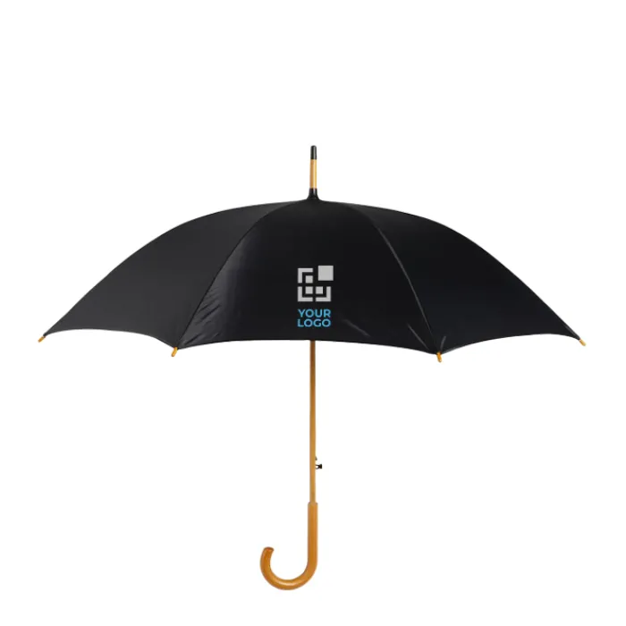 Ombrello (23 pollici) con impugnatura in legno ed apertura automatica. In poliestere 190T.
