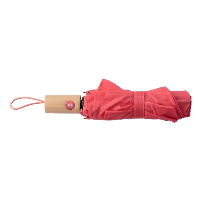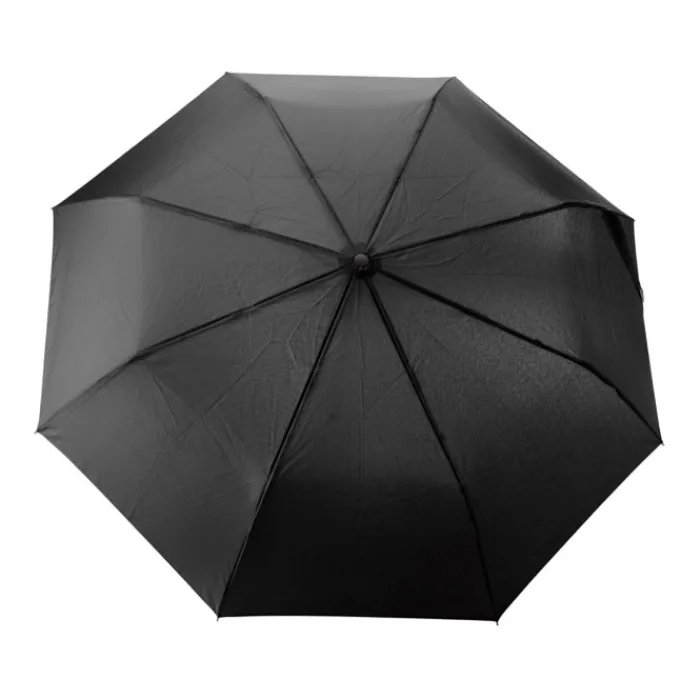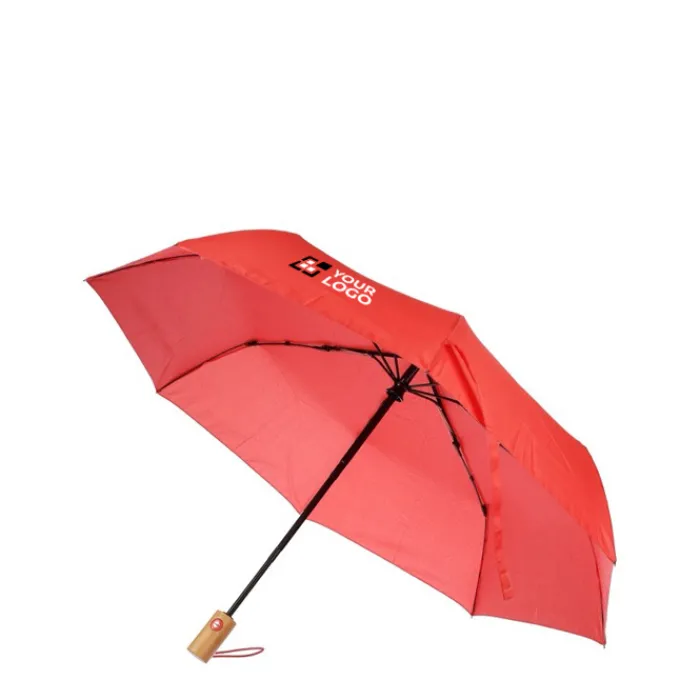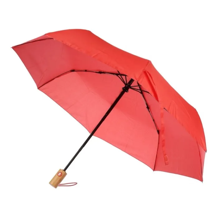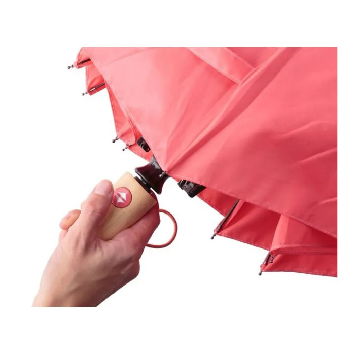 Ombrello pieghevole automatico ‘Apri & Chiudi’, otto pannelli, chiusura in velcro e manico in bambù, cordino comodo per il trasporto, in rPET