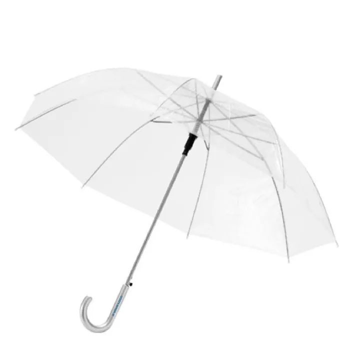 Ombrello trasparente da 23” con telaio e stecche in metallo e manico in plastica POE.