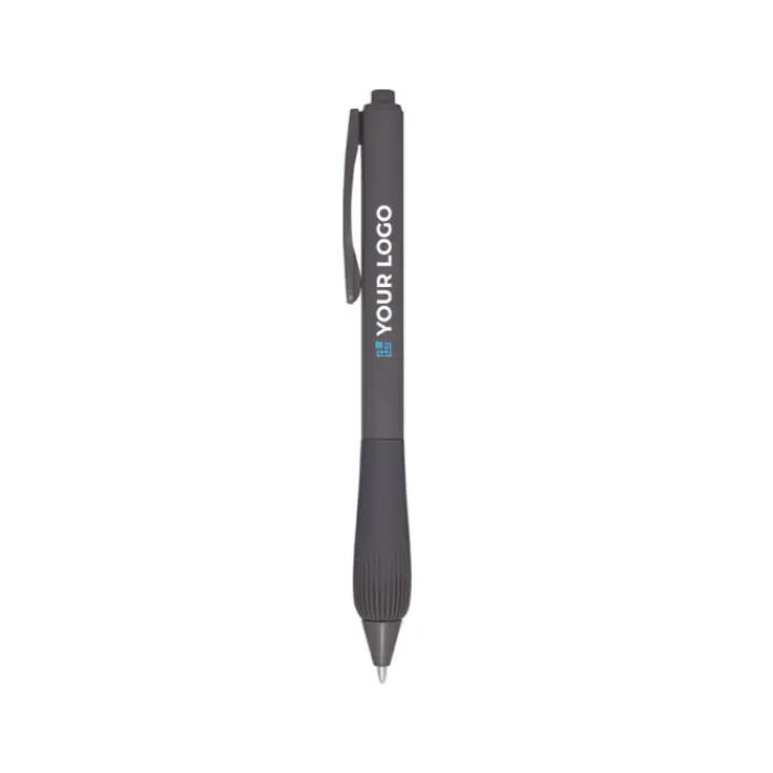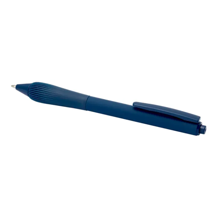 Penna a sfera in plastica ABS riciclata con fusto gommato e impugnatura in TPR. Inchiostro blu. Capacità di scrittura: 1.000 metri. Dimensione del pennino: 1,0 mm.